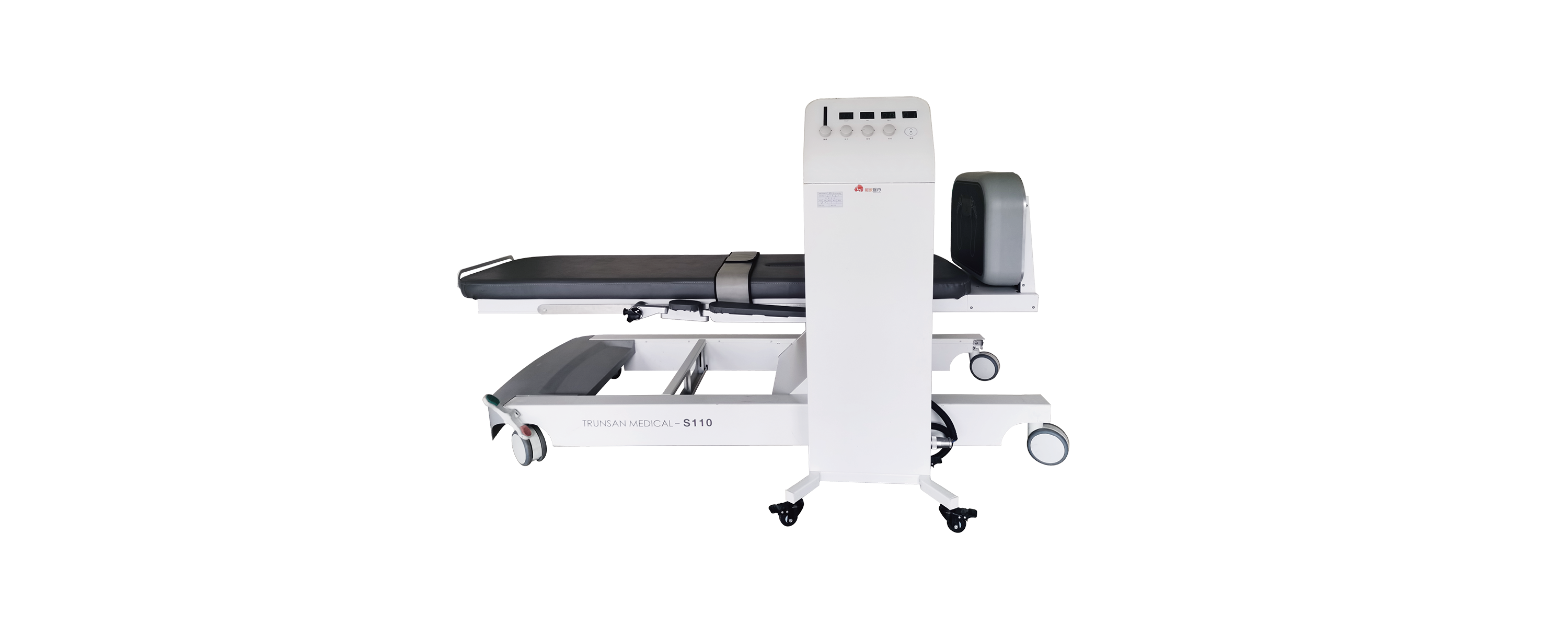 下肢振动训练系统由底座、机座、治疗床、振动机和控制台组成。